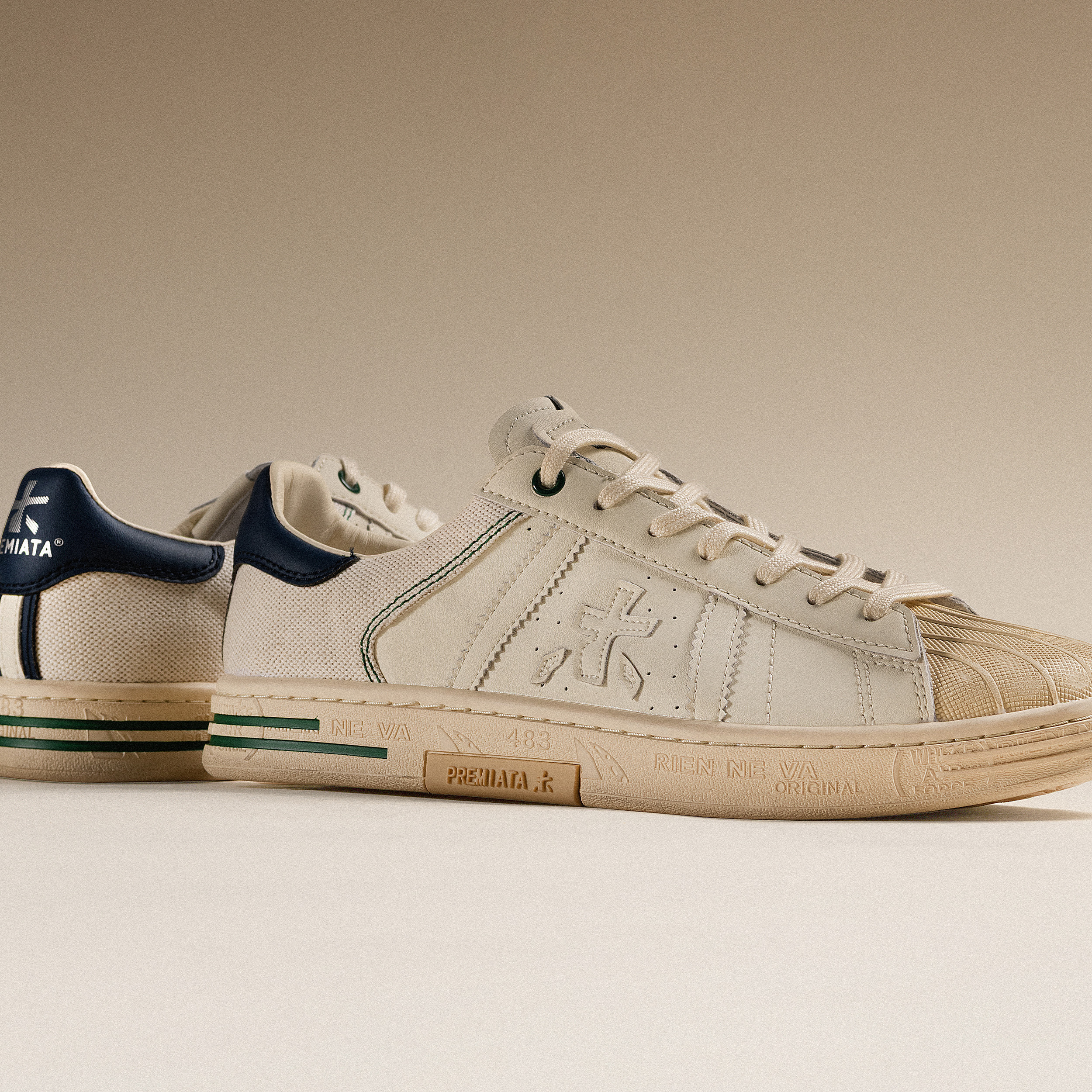 Бренд производит обувь в Монтегранаро, небольшом городке в итальянском регионе Марке, где веками живут кожевенным ремеслом. Каждая пара проходит через руки конкретных мастеров, а не конвейер, а тиражи намеренно ограничены: массовый выпуск не позволяет удерживать тот уровень качества, который Premiata считает обязательным. Компания одновременно держится за ручную сборку и активно экспериментирует с современными материалами, синтетическими сетками, лёгкими пенами, не воспринимая традицию как ограничение.