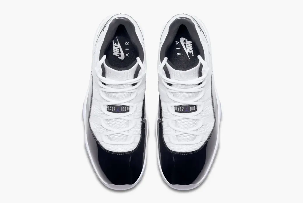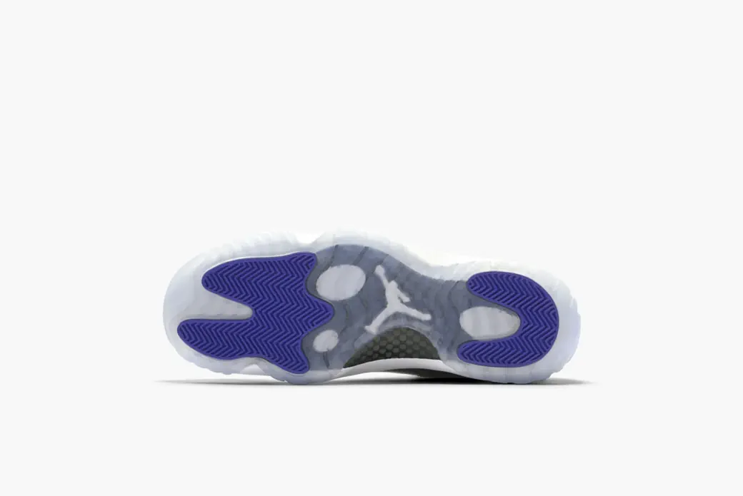 Также поклонники «Джорданов» отмечают корректное расположение логотипа Jumpman на заднике — он, как и должен, направлен вперёд, а не назад. Финальный штрих это полупрозрачная «ледяная» подмётка, которая стала ещё идеальнее дополнять узнаваемый чёрно-белый образ Air Jordan 11 «Concord». Снизу — всё те же фиолетовые резиновые вставки оттенка «Purple Concord», которые Тинкер Хэтфилд добавил для того, чтобы придать кроссовкам долю экстравагантности.
