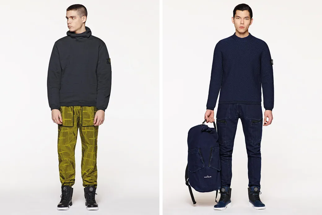 Возвращаясь к стоимости — оригинал Stone Island в приличном состоянии никогда не будет стоить дёшево. Дело здесь не в наценке за богатое культурное наследие детища Массимо Ости, а скорее наоборот — в сохранении приверженности к начальной задумке. Stone Island были первыми, кто привнёс промышленные ткани в одежду: начало положил материал Tela Stella, переместившейся с тентов военных грузовиков на куртки. Продолжая импровизировать со способами обработки, они делают это исключительно с высокой долей расчётов и тестирований — таким образом, на витрины попадают лишь лучшие образцы. Ещё выше поднимает планку линейка Stone Island Shadow Project, запущенная недавно в сотрудничестве с берлинским techwear брендом ACRONYM. Её отличает не только уникальный дизайн, но и преобразившийся патч, ставший полностью чёрным.